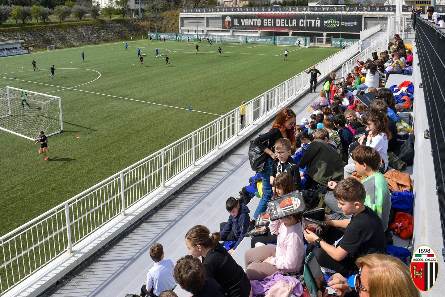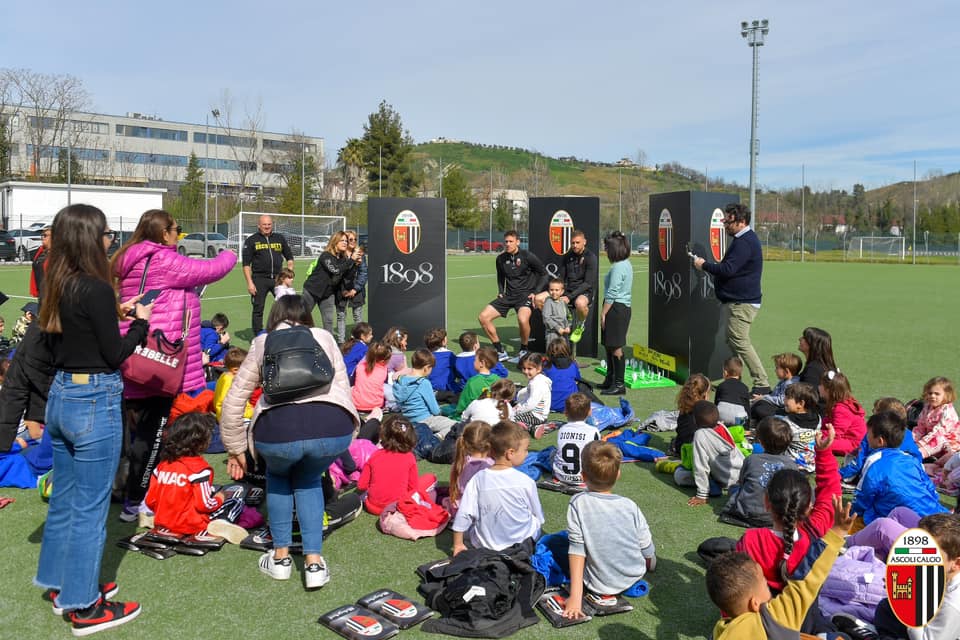 Con l’arrivo della Primavera sono tornate le visite guidate delle scuole al Picchio Village. Circa 150 alunni dell’ISC Don Giussani Infanzia di Monticelli e dell’Istituto Preziosissimo Sangue di Ascoli Piceno hanno fatto visita alla squadra bianconera in occasione della seduta di allenamento.