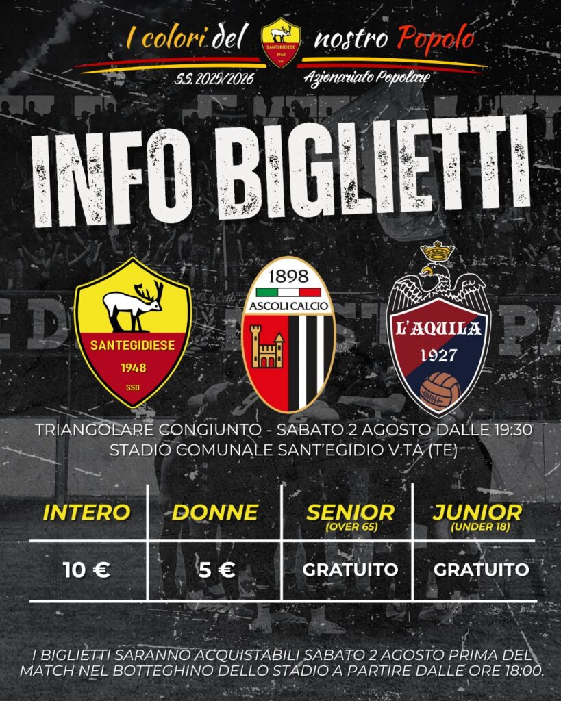 Ascoli, ingresso a 10 euro (intero) per il triangolare di Sant’Egidio
