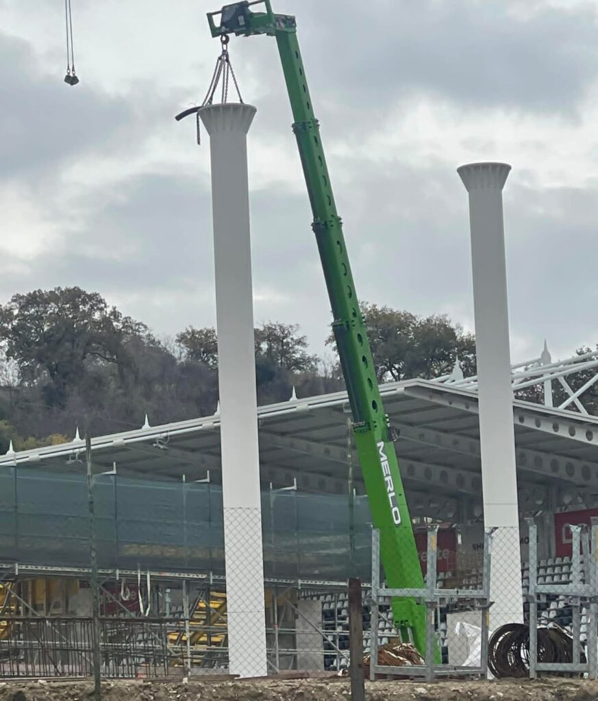 Ascoli, i pilastri per la curva già in opera